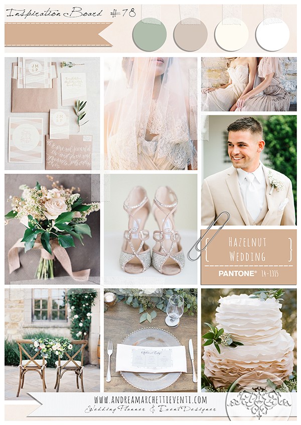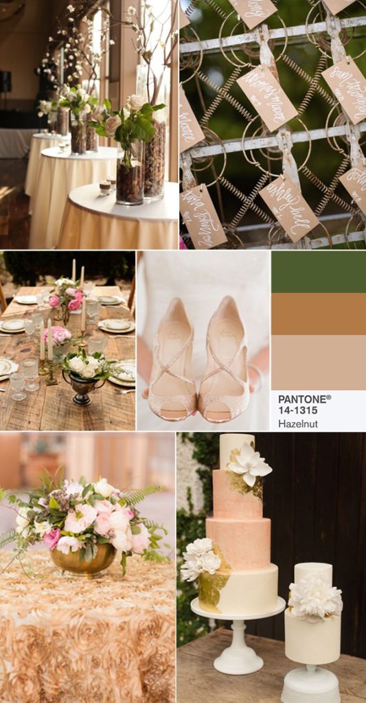 Hazelnut – ciepły, szlachetny, jasny orzechowy beż. Idealnie sprawdzi się w uroczystościach stylizowanych na retro oraz tych rustykalnych czy boho. Do łączenia z innymi zgaszonymi kolorami, jak wspomniany wyżej pale dogwood.