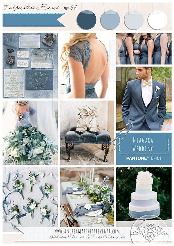 Niagara – nietypowy odcień błękitu. Spokojny, przygaszony niebieski, przywołuje na myśl odcień głębokiej wody w pochmurny dzień. Stonowana Niagara będzie trafionym wyborem dla par chcących delikatnie podkreślić kolorem swoją uroczystość, nie chcąc jednocześnie ryzykować zbyt intensywnymi barwami.